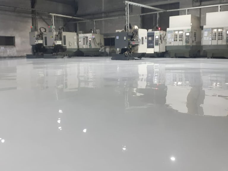 Tingkatkan daya tahan lantai industri Anda dengan lapisan epoxy berkualitas tinggi yang tahan lama, mudah dibersihkan, dan aman digunakan di berbagai lingkungan kerja.